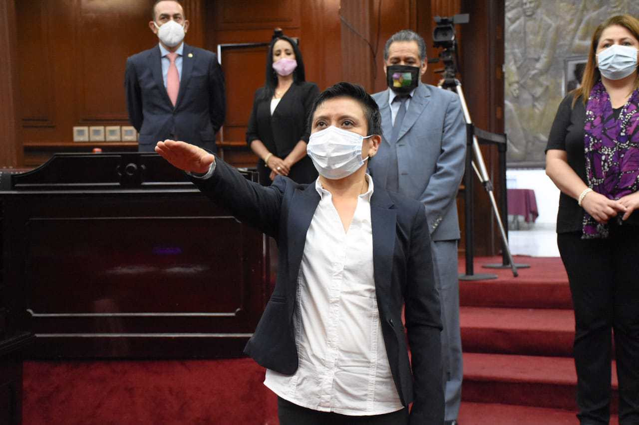 Morelia, Michoacán, 16 de junio de 2021.- Ante el Pleno de la LXXIV Legislatura, Alfega Rivera Alejo, rindió protesta como presidenta municipal sustituta del Ayuntamiento de Chilchota, por lo que resta del periodo constitucional 2018-2021.