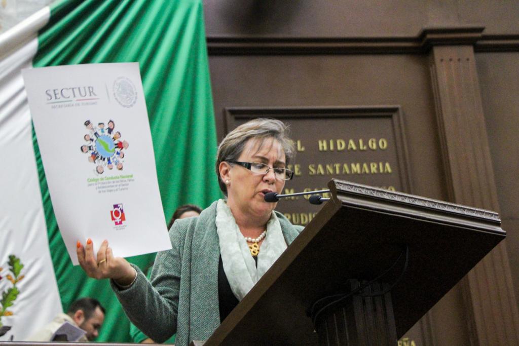 Al hacer uso de la Máxima Tribuna del Estado, la diputada integrante de la LXXV Legislatura Local planteó reformar la Ley Orgánica Municipal y la de Turismo, ambas del Estado de Michoacán, para que desde la legislación se garantice mayor protección a las y los niños, como adolescentes.