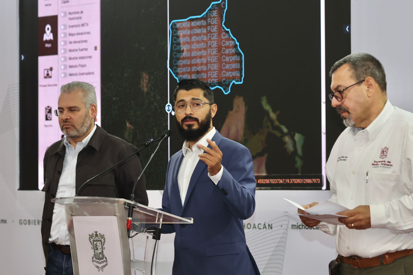 En conferencia de prensa, el mandatario explicó que como parte de la certificación voluntaria de la cadena productiva de aguacate, desde el 30 de agosto los empaques aguacateros ya cuentan con la relación de dichas huertas detectadas a través del sistema de vigilancia satelital Guardián Forestal.