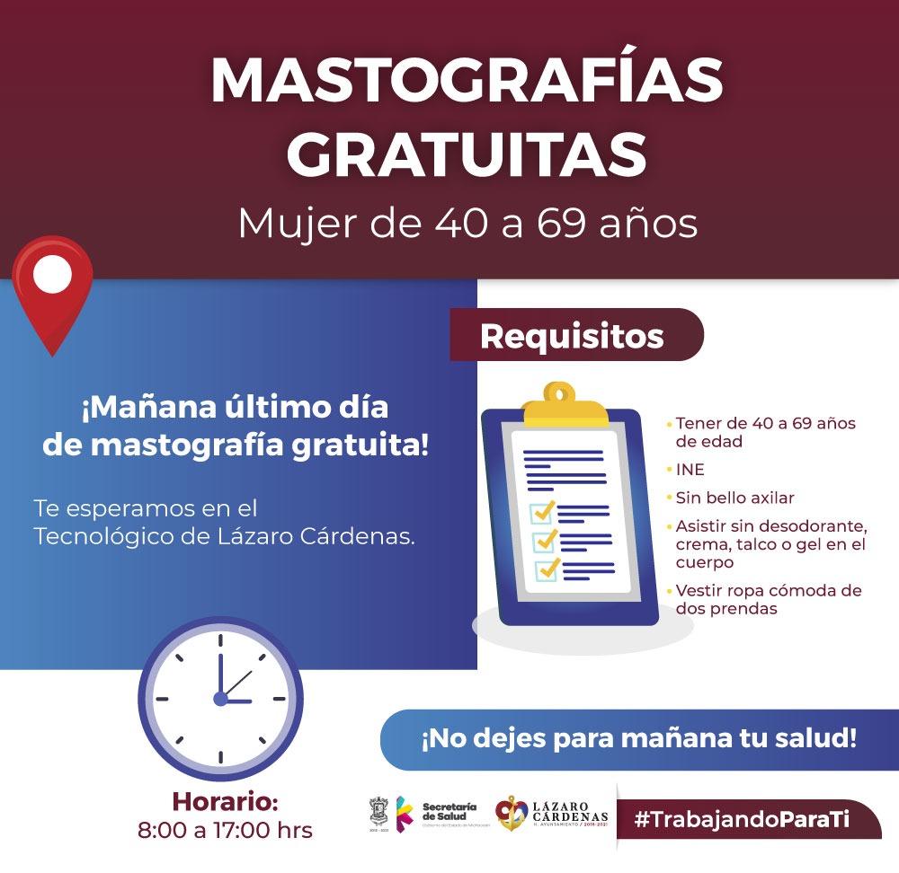Lázaro Cárdenas, Michoacán; a 27 de julio de 2021.- La Campaña Gratuita de Mastografías, promovida de manera conjunta entre el Gobierno de Lázaro Cárdenas y la Secretaría de Salud de Michoacán -a través de la Jurisdicción Sanitaria No. 08-, arribará este miércoles al Instituto Tecnológico de Lázaro Cárdenas (ITLAC).