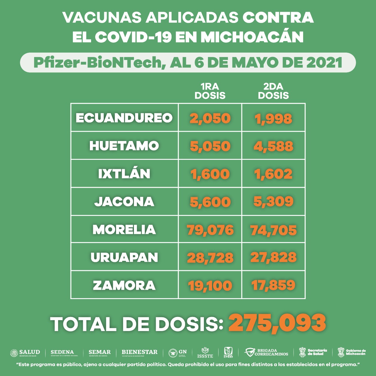 Morelia, Michoacán, a 6 de mayo de 2021.- Se mantienen activos puestos de vacunación anti COVID-19, para adultos mayores de 60 años en Coalcomán, La Huacana y Tepalcatepec.