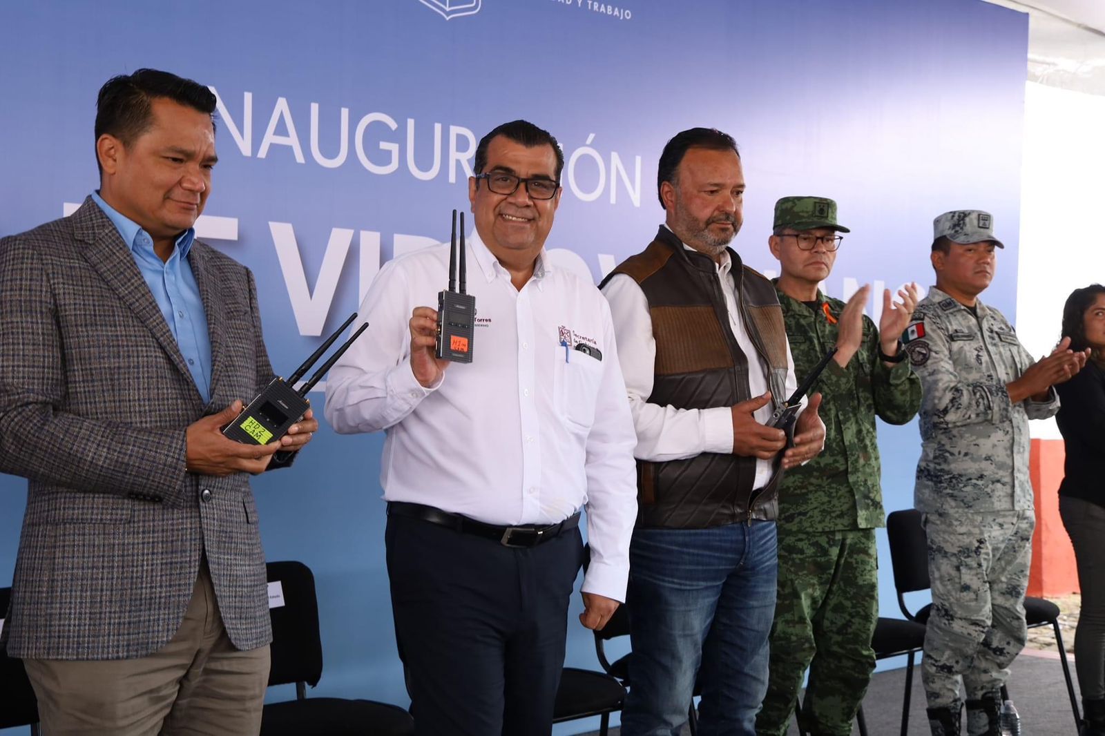 El secretario de Gobierno, Elías Ibarra Torres, y el titular del Secretariado Ejecutivo del Sistema Estatal de Seguridad Pública (SESESP), César Erwin Sánchez Coria, inauguraron el equipamiento conformado por 36 cámaras de circuito cerrado que brindará atención permanente en 10 colonias y localidades de ambos municipios para beneficio de más de 12 mil 400 habitantes.
