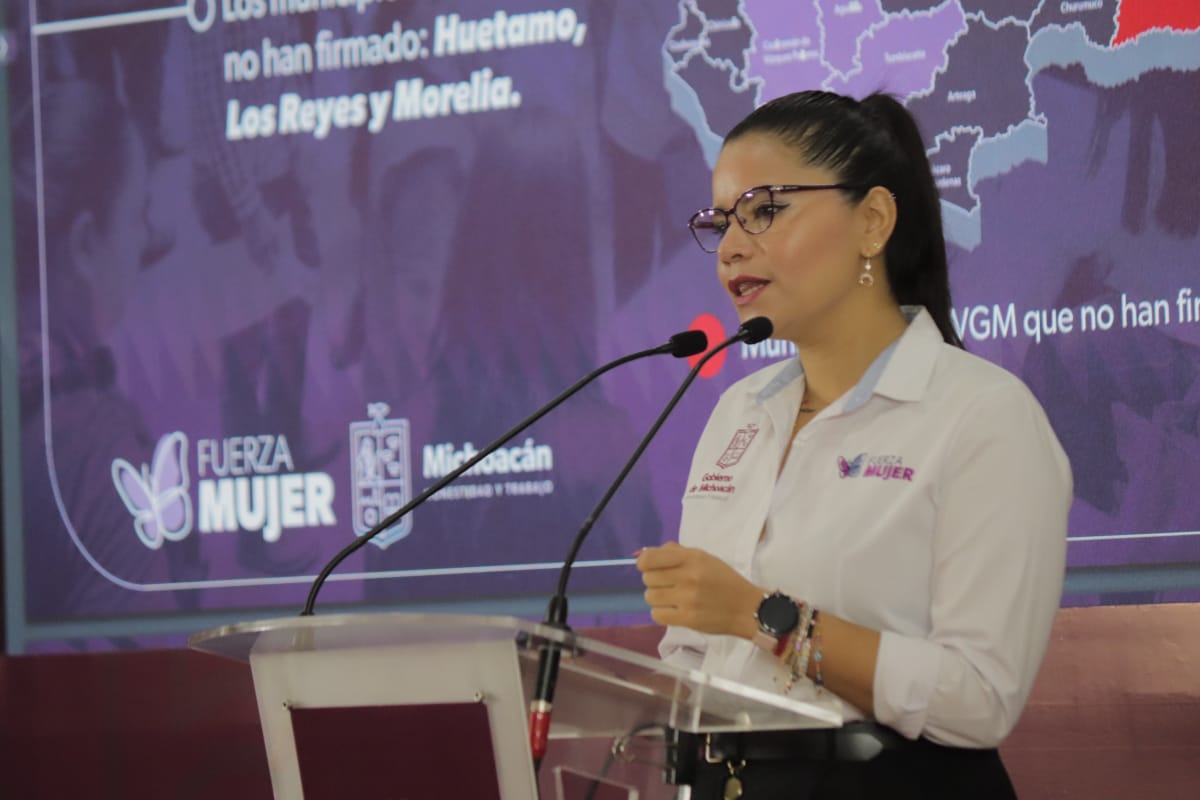 Ratificó el compromiso del Gobierno de Michoacán por establecer políticas públicas en favor de las mujeres, pero respaldadas con recursos que hagan posible su ejecución y que se conviertan en beneficios concretos, como el caso de los apoyos a Mujeres Egresadas de Refugios, lo cual consideró especialmente importante para Apatzingán, Hidalgo, Huetamo, La Piedad, Lázaro Cárdenas, Los Reyes, Maravatío, Morelia, Pátzcuaro, Sahuayo, Tacámbaro, Uruapan, Zamora y Zitácuaro, los 14 municipios con Alerta de Violencia de Género.