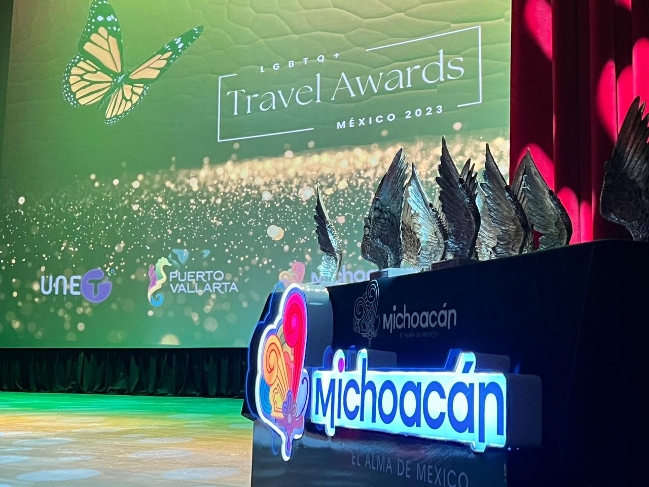Morelia, Michoacán a 09 de Noviembre de 2023.- Michoacán fue sede de la entrega de premios LGBTQ+ Travel Awards 2023 que organizó la Unión Nacional de Empresarios Turísticos LGBTQ+ (UNET) y en donde la Secretaría de Turismo del Estado se llevó el premio en la categoría de Oficina Local de Turismo por el apoyo, impulso e inclusión que se da a la comunidad LGBTQ+ en el estado.