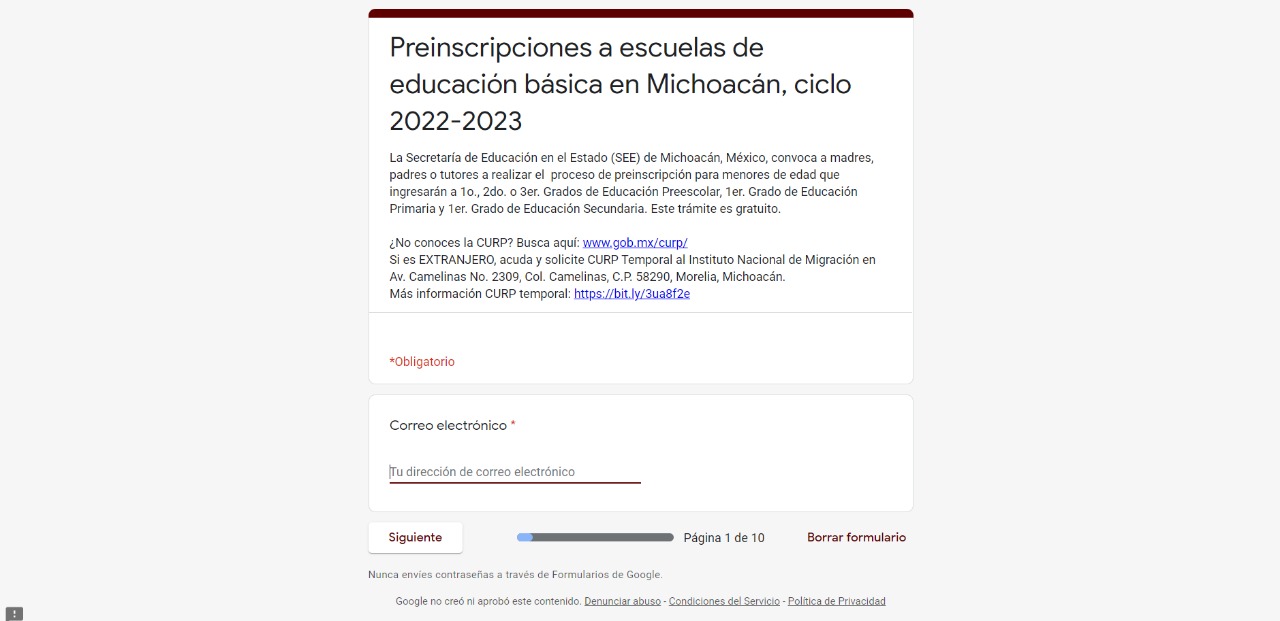 Morelia, Michoacán, 1 de febrero del 2022.- La Secretaría de Educación del Estado de Michoacán (SEE), habilitó este martes la plataforma virtual para que madres, padres y tutores realicen el proceso de preinscripción de niños y adolescentes a escuelas de educación básica.