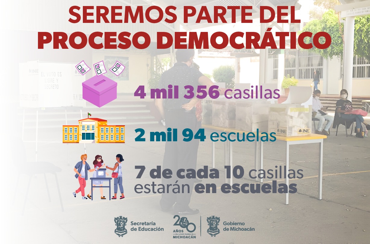 Se trabaja de la mano con el Instituto Nacional Electoral (INE) y el Instituto Electoral de Michoacán (IEM) para este proceso en el que nuevamente las escuelas jugarán un papel fundamental.