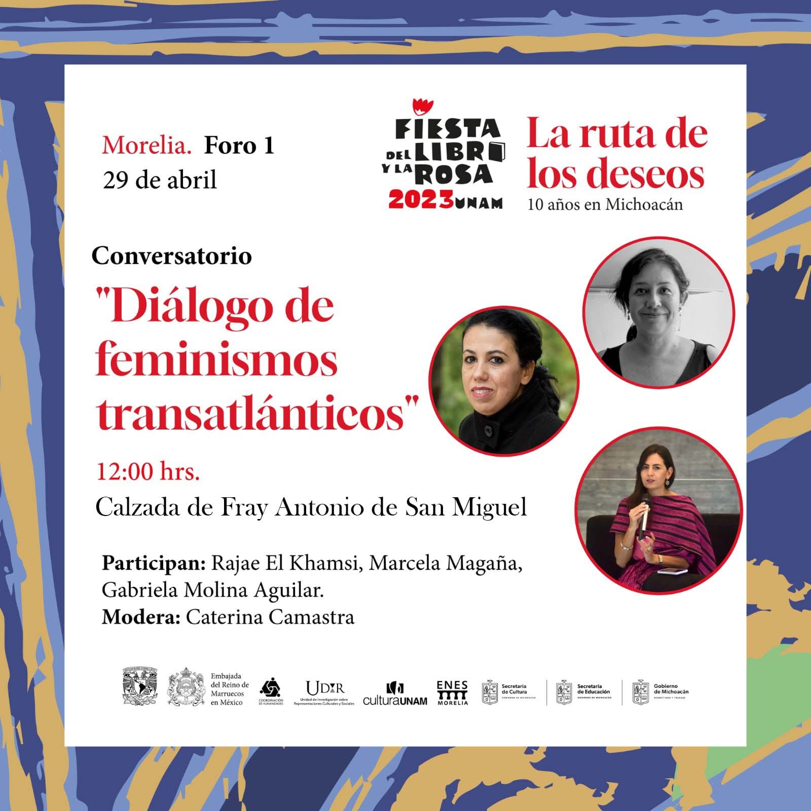 En su décima edición, la SEE participará con diversas actividades, como el conversatorio Diálogo de feminismos transatlánticos, que se llevará a cabo el sábado 29 de abril de 12:00 a 13:00 horas en el Centro Cultural UNAM Morelia; la conferencia magistral Mujeres públicas ayer y hoy, también el sábado, pero de 18:00 a 19:00 horas; en ambas actividades tendrá participación la secretaria Gabriela Molina.