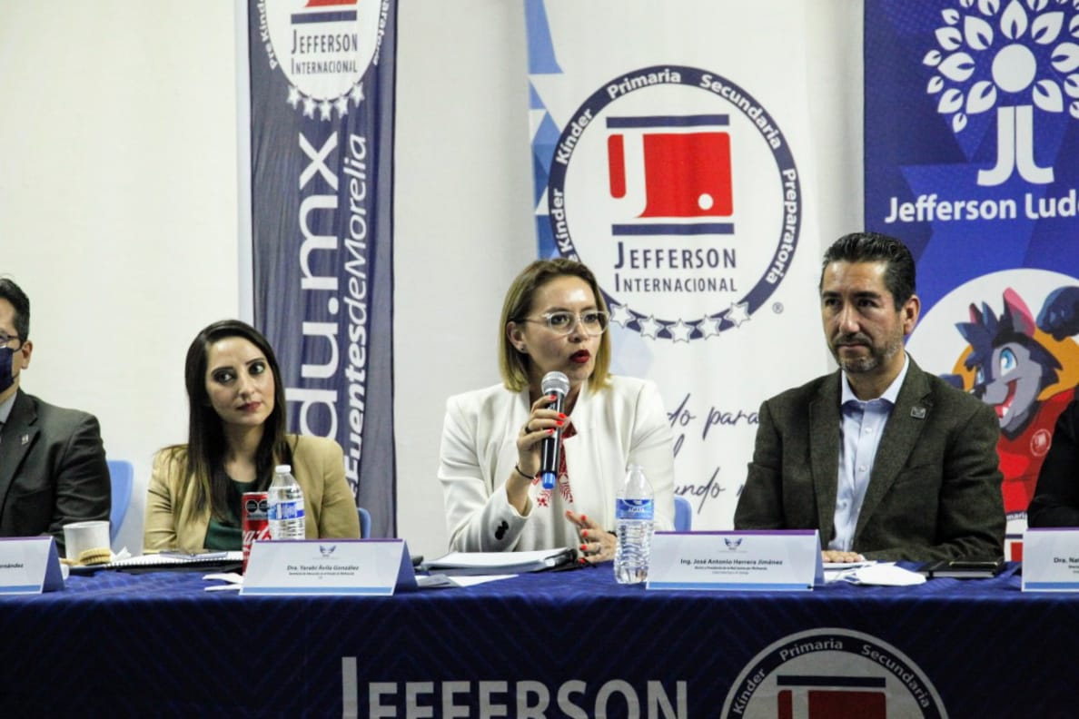 Morelia, Michoacán, 15 de junio de 2022.- Con un llamado a reforzar el trabajo, dada la importancia de la coordinación entre educación pública, privada y el sector empresarial, la secretaria de Educación, Yarabí Ávila González, se reunió con los integrantes de la Red Juntos por Michoacán para alinear los objetivos en materia educativa estatal.