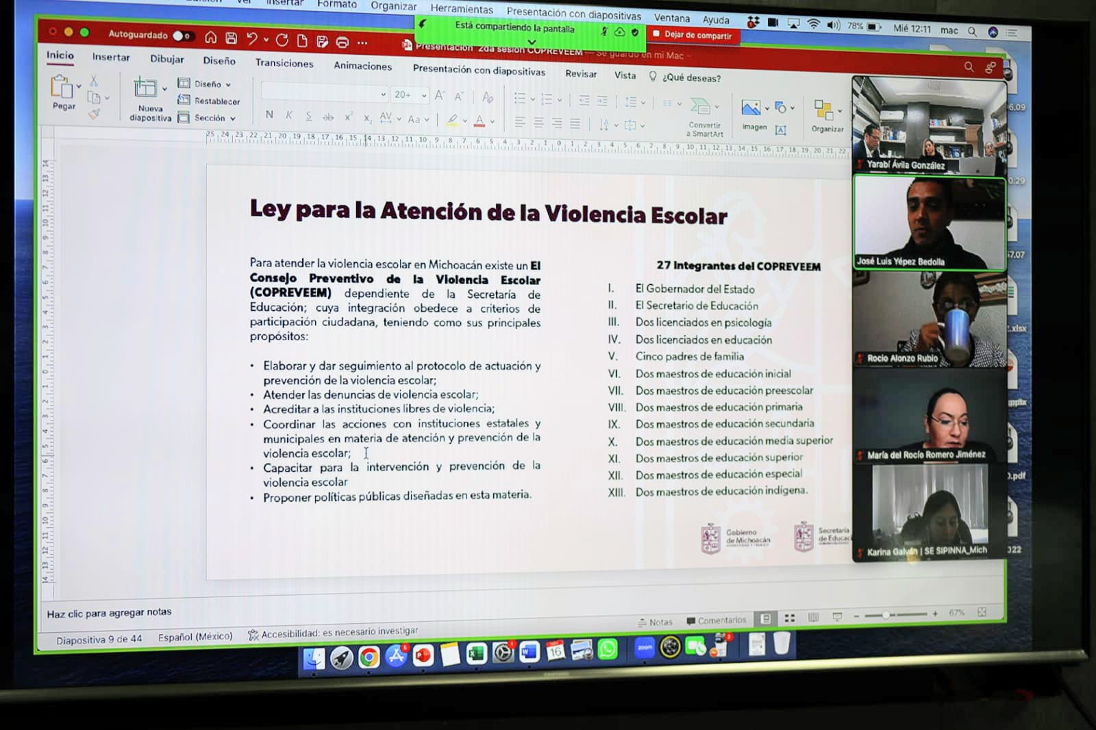 Asimismo, en el Copreveem se trabaja en una propuesta para la actualización del protocolo y de la Ley para la Atención y Prevención de la Violencia Escolar.