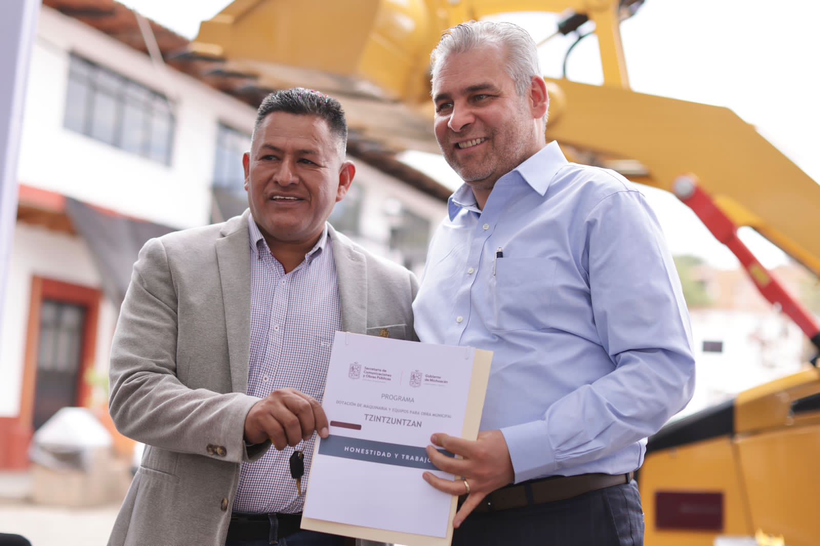 Tzintzuntzan, Michoacán a 15 de Mayo de 2023.- El gobernador Alfredo Ramírez Bedolla, entregó maquinaria para obra pública en los municipios de Ziracuaretiro y Tzintzuntzan, donde destacó el compromiso de la administración para apoyar a las demarcaciones y su desarrollo.