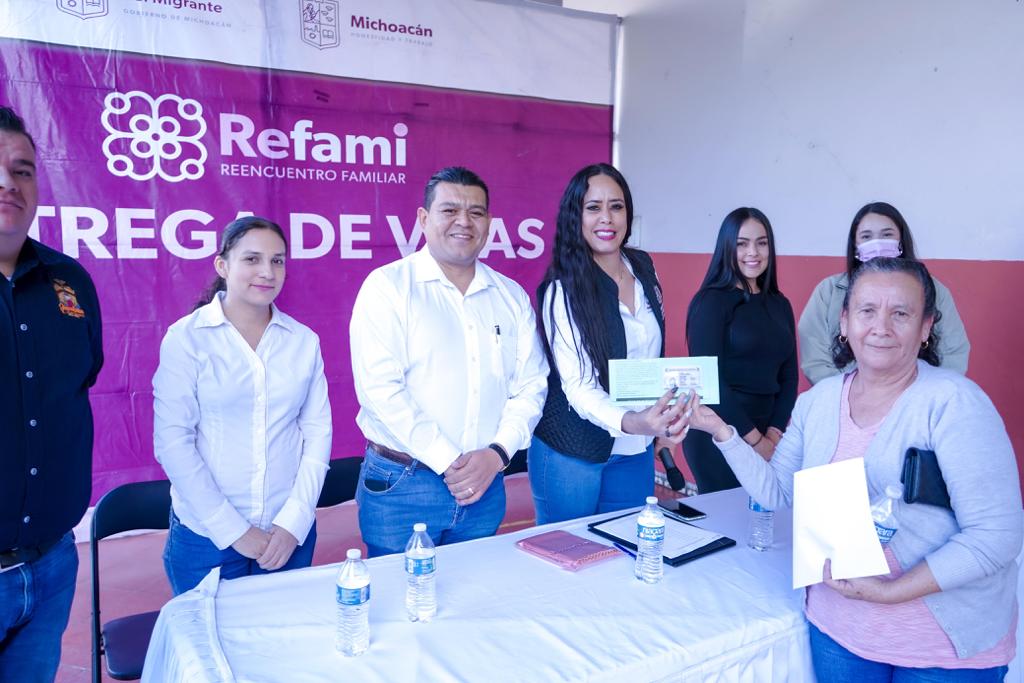Morelia, Michoacán a 09 de Diciembre de 2023. Sahuayo, Jiquilpan y Marcos Castellanos han sido los últimos municipios que se han beneficiado con la entrega de visas de turista del programa Reencuentro Familiar (Refami), informó la titular de la Secretaría del Migrante, María Teresa Mora Covarrubias.