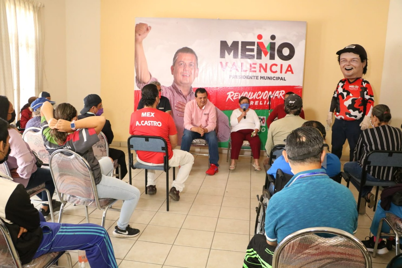 Morelia, Michoacán, a 20 de mayo de 2021.- Para revolucionar Morelia es necesaria la suma de todos los sectores de la sociedad; en este proyecto del candidato del PRI a la Presidencia Municipal, Memo Valencia, todos caben, “pero sobre todo el aporte que darán las personas con discapacidad será fundamental para juntos poner orden y darles justicia social a quienes durante décadas han sido olvidados y discriminados”, aseguró el aspirante a edil durante una charla con integrantes del Centro de Invidentes de Michoacán IAP, el cual integra también a personas con discapacidad motriz, auditiva, intelectual, Down, autismo, entre otros.