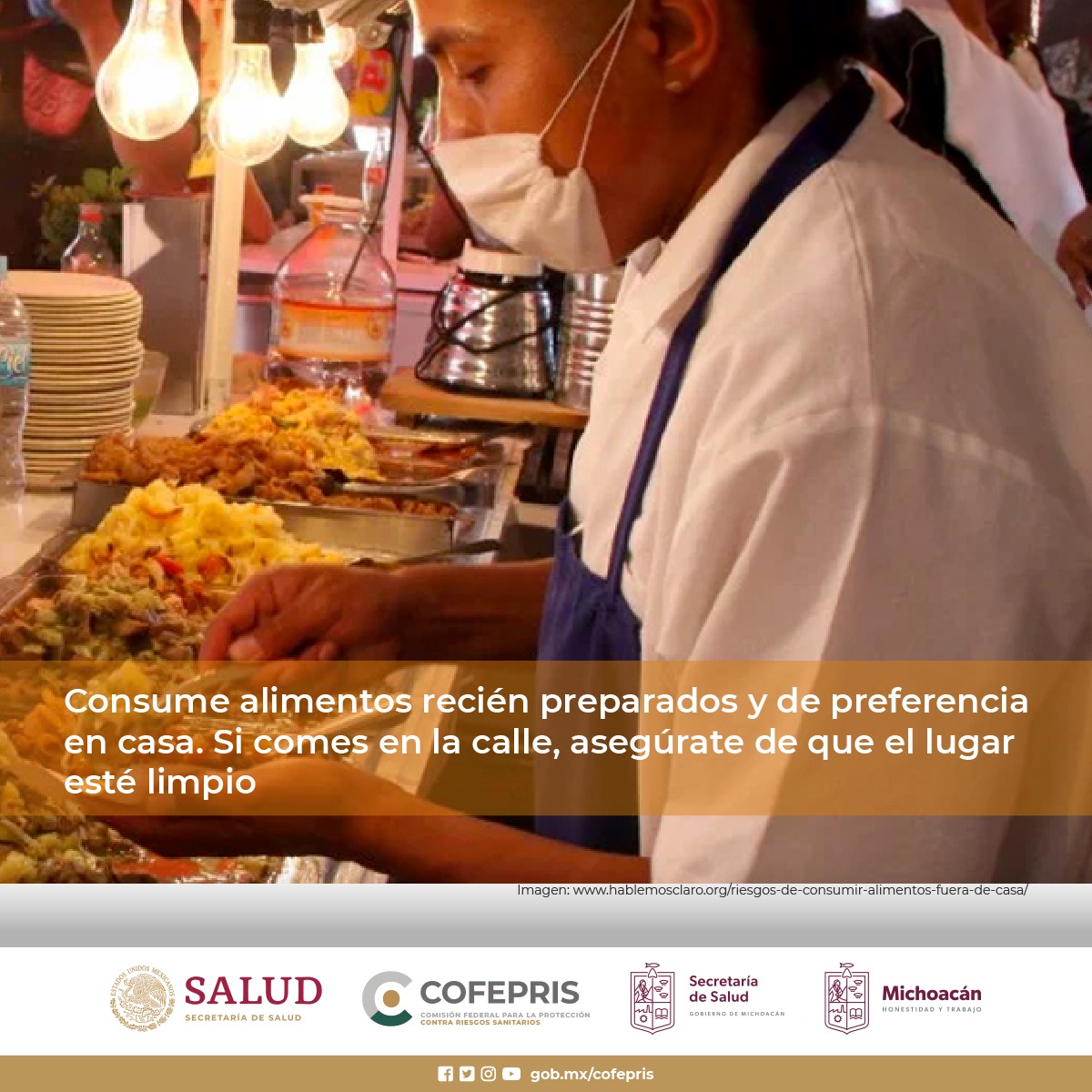 Morelia, Michoacán, 26 de junio del 2023.- Ingerir alimentos inmediatamente después de ser preparados; no comer en la calle; y consumir agua potable, hervida o purificada, son las principales acciones sanitarias para la prevención de infecciones gastrointestinales en la población.