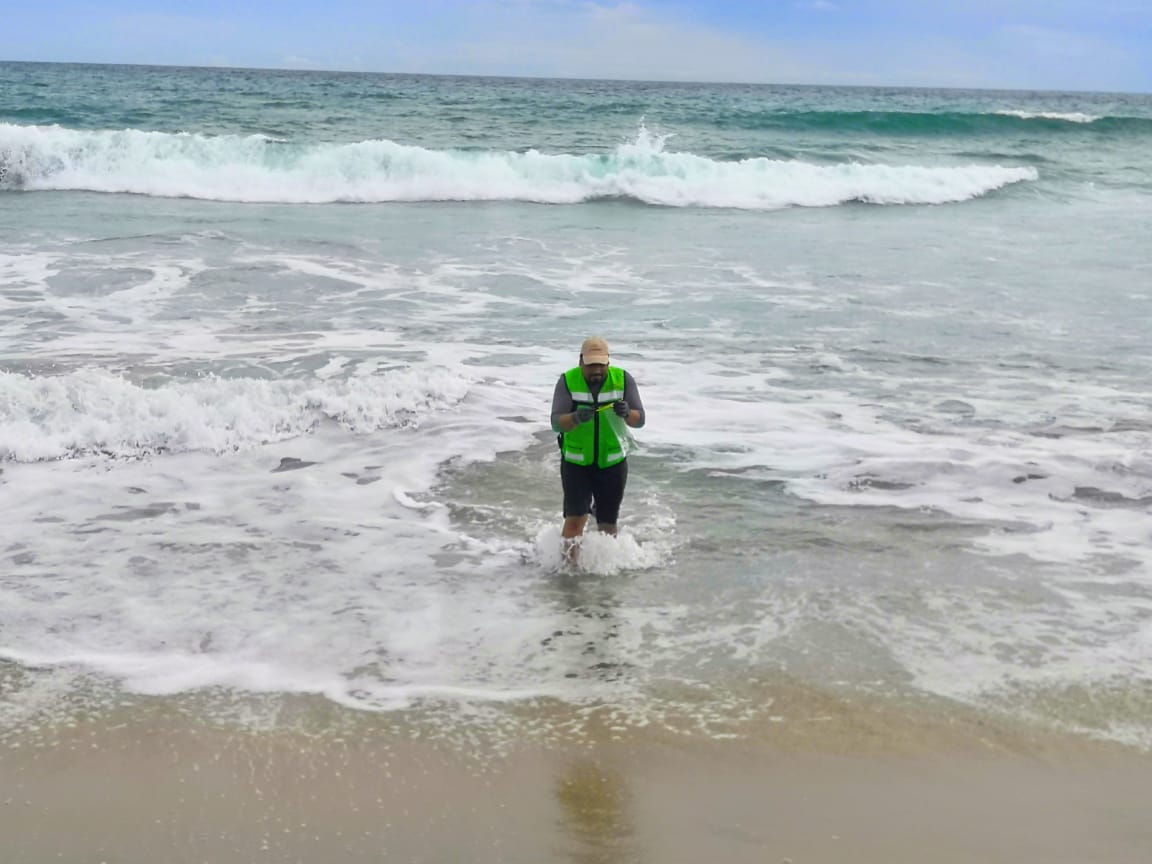 Morelia, Michoacán a 24 de Noviembre de 2023. Para determinar si el agua de las 12 playas michoacanas es apta para el recreo humano, de cara a las próximas vacaciones decembrinas, la Secretaría de Salud de Michoacán (SSM) arrancó con el muestreo prevacacional al agua de mar.