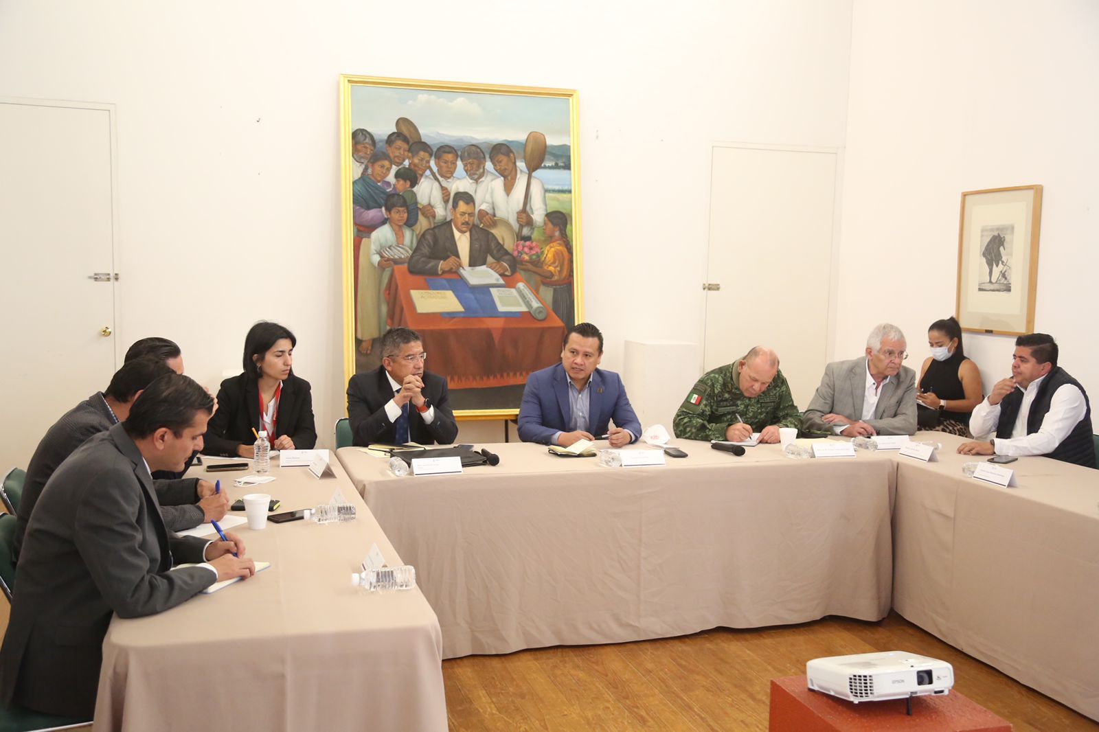 Morelia, Michoacán, a 14 de diciembre de 2021.- Este martes el secretario de Seguridad Pública, General José Alfredo Ortega Reyes, participó en una reunión interinstitucional en la que se revisaron las estrategias para garantizar el libre tránsito en la carretera Tepalcatepec-Coalcomán y atender las necesidades de los pobladores.