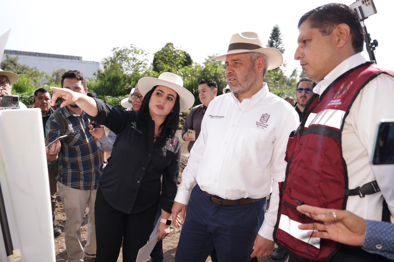 Uruapan, Michoacán a 02 de Agosto de 2023.- El gobernador Alfredo Ramírez Bedolla y la secretaria de Desarrollo Urbano y Movilidad, Gladyz Butanda Macías, supervisaron los trabajos de construcción de la Avenida San Francisco poniente-oriente.