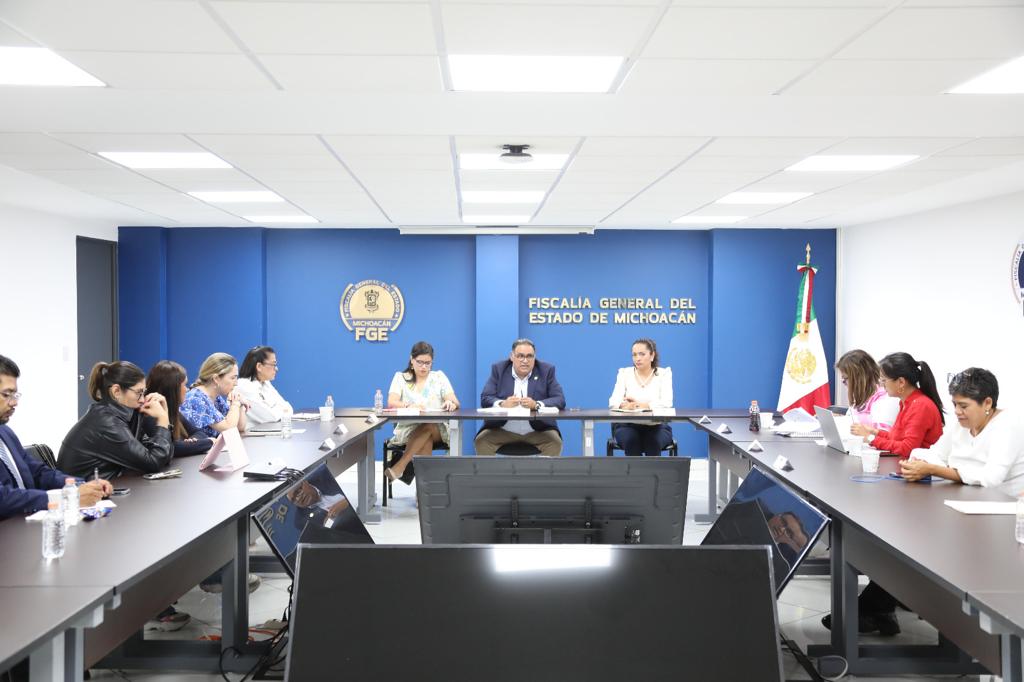 Morelia, Michoacán, a 28 de Mayo de 2023.- Como parte de las acciones de fortalecimiento a la atención de delitos en materia de violencia de género, autoridades de la Fiscalía General del Estado de Michoacán (FGE) y de la Secretaría de Igualdad Sustantiva y Desarrollo de las Mujeres Michoacanas (Seimujer), llevaron a cabo una reunión para dar seguimiento a acciones que coadyuven a reforzar actuaciones en esta materia.