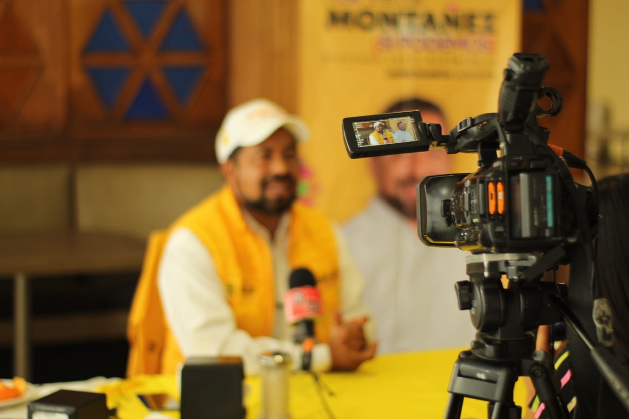 Morelia Michoacán a 19 de Mayo de 2021. En conferencia de prensa el candidato José Luis Montañez, habló sobre la inseguridad y la necesidad de rescatar los cuerpos policiales.