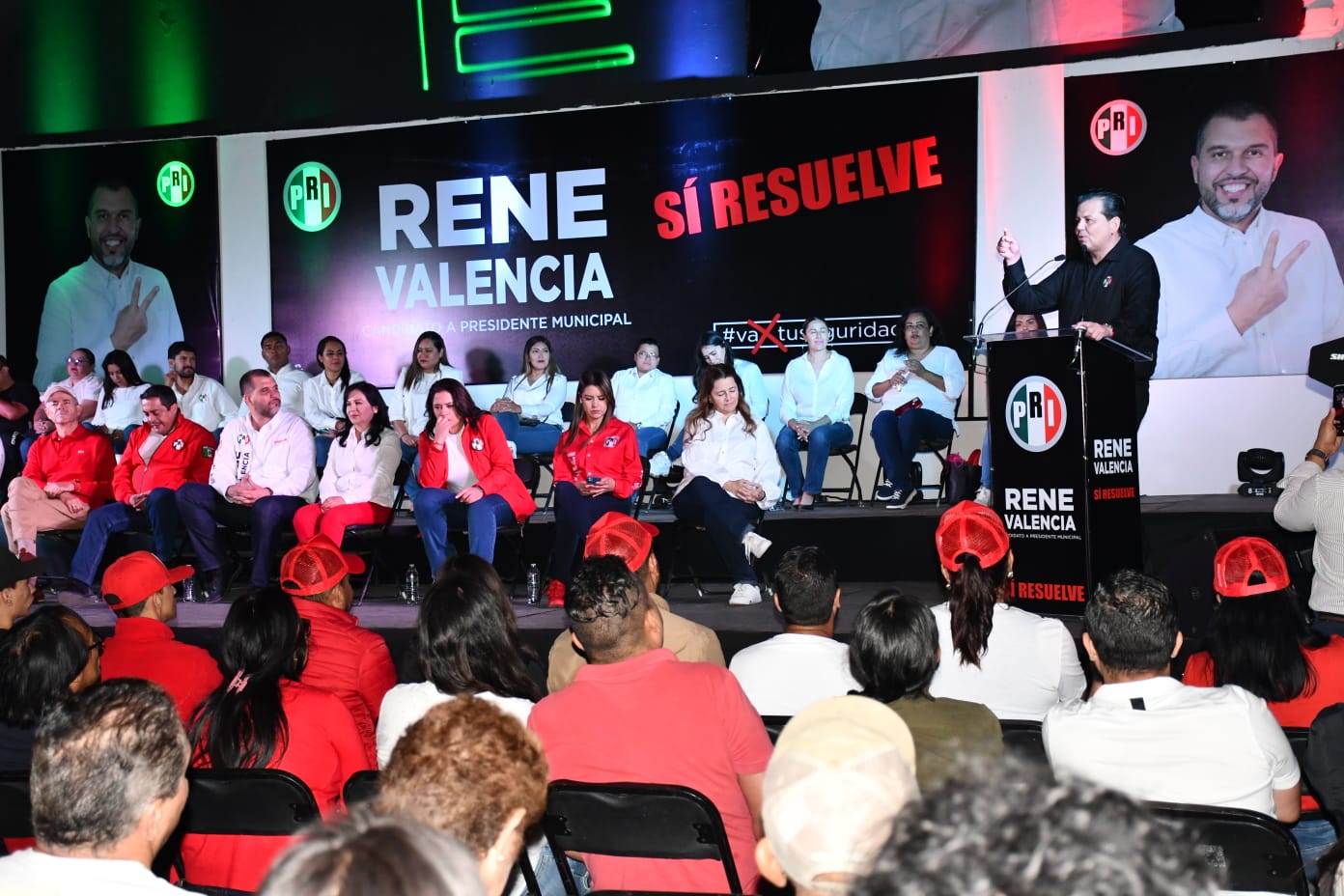 “En este proyecto que empujó desde la dirigencia Memo y Xóchitl, se buscó construir, se dialogó con distintas fuerzas políticas, pero quedó muy claro que nunca el partido iba a estar por debajo de un personaje catrín que cree que todo lo sabe y todo lo puede, por eso, esto es el PRI que está con la gente, que se emociona y entusiasma por un proyecto verdadero social y es lo que le dio origen al partido. Lo digo y que se escuche fuerte y claro, el PRI sabe cómo, tiene con qué y ése es René Valencia”, declaró.