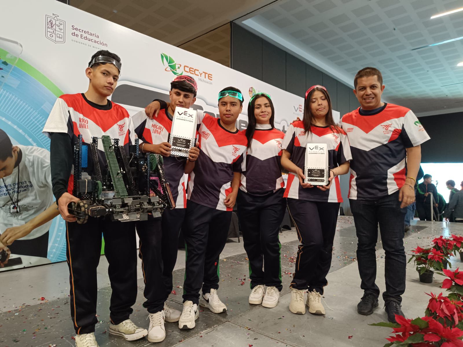 Lagunillas, Michoacán a 16 de Diciembre de 2024. Estudiantes del Colegio de Estudios Científicos y Tecnológicos del Estado de Michoacán (Cecytem), plantel Lagunillas, lograron su pase al mundial de Robótica, a celebrarse en Dallas, Texas, en febrero de 2025, tras obtener el máximo galardón de Excelencia durante el séptimo Torneo Estatal de Robótica.