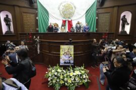 Morelia, Michoacán, a 4 de febrero del 2026.- Previo al inicio de la sesión programada para este miércoles, diputadas y diputados integrantes de la 76 Legislatura, rindieron homenaje póstumo y guardaron un minuto de silencio por el sensible fallecimiento de Víctor Manuel Mujica Vega y Anayeli Hernández León,...