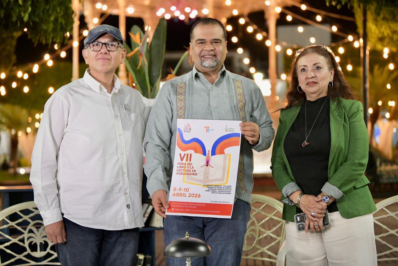 Puruándiro, Michoacàn a 01 de Abril 2026. Reafirmando su compromiso por trabajar en la reconstrucción del tejido social, el presidente Víctor Vázquez, a través de una rueda de prensa y en coordinación con los organizadores y titulares del programa “Salas de Lectura, Alas a tu Imaginación”, presentó esta tarde el programa de actividades de la 7ma. Feria del Libro y la Lectura en Puruándiro, un espacio lleno de arte, educación y cultura que se llevará a cabo los próximos 8, 9 y 10 de abril en la calle peatonal de la cabecera municipal.