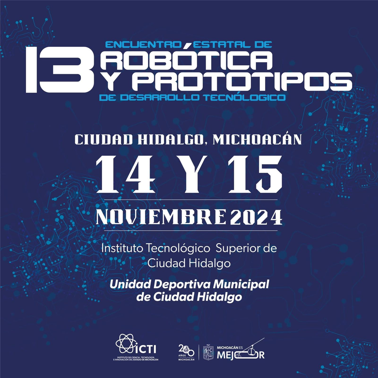 Morelia, Michoacán, 5 de Noviembre de 2024.- El Instituto de Ciencia Tecnología e Innovación extiende al 8 de noviembre la convocatoria para registrar equipos al 13 Encuentro Estatal de Robótica y Prototipos de Desarrollo Tecnológico 2024, que se llevará a cabo en Hidalgo, Michoacán.