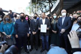 Ciudad de México, a 3 de febrero de 2022.- La dirigencia nacional, senadores y diputados federales y locales del PAN, a nombre de millones de mexicanos, presentaron ante la Fiscalía General de la República, una denuncia de hecho por los presuntos actos de corrupción y tráfico de influencias...