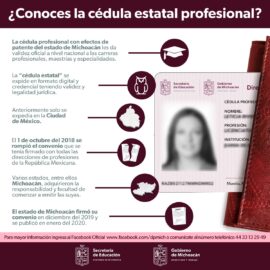 Morelia, Michoacán, 21 de enero del 2022.- La Secretaría de Educación del Estado (SEE) en coordinación con la Dirección de Profesiones del Estado, ratifica la validez en todo el país, de las cédulas profesionales estatales que expide. El gobierno de Michoacán respalda las ventajas y beneficios que ofrece...