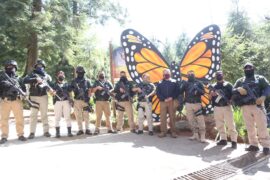 Angangueo, Michoacán, a 22 de noviembre del 2021.- Este día, el secretario de Seguridad Pública, General José Alfredo Ortega Reyes, acudió a la Biosfera de la Mariposa Monarca en este municipio, donde encabezó el arranque del dispositivo de vigilancia, tras el arribo del ejemplar a las tierras michoacanas,...