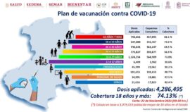 Morelia, Michoacán, 22 de noviembre del 2021.- En Michoacán se han aplicado un millón 124 mil 254 dosis de vacuna anti COVID-19 para jóvenes de 18 a 29 años de edad, lo que representa un avance del 71.04 por ciento en este grupo poblacional. Hasta el momento se...