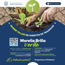 Morelia, Michoacán a 07 de octubre del 2021.- El Ayuntamiento de Morelia, a través de la Secretaría de Desarrollo Rural y Medio Ambiente y el Polifórum Centro de Innovación Social, arrancará el próximo miércoles 13 de octubre, con el primer Taller Huertos de Traspatio «Morelia Brilla Verde», mismo...