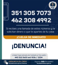 Morelia, Michoacán, a 26 de Septiembre de 2021.- Investigaciones realizadas por la Fiscalía General del Estado de Michoacán (FGE), permitieron localizar a salvo a padre e hijo, víctimas de extorsión virtual, ocurrida en Charo. El pasado 23 de septiembre, J. Nicolás C.H., y su hijo de 11 años...