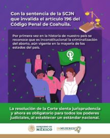 Ciudad de México a 07 de Septiembre de 2021.- El Instituto Nacional de las Mujeres (Inmujeres) se congratula por el avance histórico que representa la resolución tomada por la Suprema Corte de Justicia de la Nación (SCJN) de declarar inconstitucional la criminalización del aborto en México. El Instituto...
