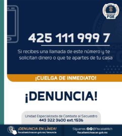 Morelia, Michoacán, a 27 de Junio de 2021.- La Fiscalía General del Estado de Michoacán (FGE), a través de la Unidad Especializada de Combate al Secuestro (UECS) logró el aseguramiento, sana y salva, de una mujer víctima del delito de Extorsión Virtual, en Taretan. De acuerdo con los...