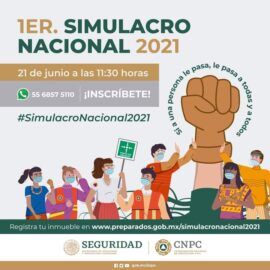 Ciudad de México a 20 de Junio de 2021.- Para reforzar una cultura de la prevención, el próximo lunes 21 de junio, a las 11:30 horas, la Secretaría de Seguridad y Protección Ciudadana (SSPC), a través de la Coordinación Nacional de Protección Civil (CNPC), organiza el 1er. Simulacro...
