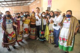 Chilchota, Michoacán a 23 de Abril de 2021.- Bajo una atmósfera de fiesta y de rito ancestral, indígenas de la cañada de los Once Pueblos le colocaron vistosos adornos de cuelgas al candidato del Equipo por Michoacán, Carlos Herrera, quien externó palabras de gratitud con emoción y con...