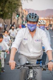 Morelia, Michoacán a 20 de Abril del 2021. Con una “rodada en bici» por el Centro Histórico de la ciudad, Alfonso Martínez Alcázar, candidato a la alcaldía de Morelia por los partidos PAN y PRD, aseguró que volverá a Palacio Municipal para impulsar una movilidad sustentable y devolver...