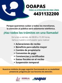 Morelia, Michoacán, a 11 de Febrero de 2021. Ante la situación crítica que se vive en la capital michoacana debido al incremento de contagios por COVID-19, el Organismo Operador de Agua Potable, Alcantarillado y Saneamiento de Morelia (OOAPAS) reafirma su compromiso de seguir operando y brindando atención a...