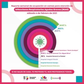 Morelia, Michoacán, a 6 de Febrero de 2021.- El Hospital General de Tacámbaro de la Secretaría de Salud de Michoacán (SSM), registra este sábado su máxima capacidad en ocupación de camas para la atención de pacientes COVID-19. El total de las camas reconvertidas para la atención de Infecciones...