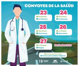 Morelia, Michoacán, a 22 de Noviembre de 2020.- La Secretaría de Salud de Michoacán (SSM), desplegará los Convoyes de la Salud y de Pueblos Indígenas a 6 municipios para llevar servicios gratuitos, del 23 al 27 de noviembre. Los servicios que ofertará a la ciudadanía son estudios de...