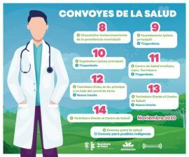Morelia, Michoacán, a 8 de Noviembre de 2020.- La Secretaría de Salud de Michoacán (SSM), acercará servicios de salud gratuitos a 6 municipios, a través de los Convoyes de Salud y de Pueblos Indígenas, del 8 al 14 de noviembre. La unidad de Pueblos Indígenas estará el día...