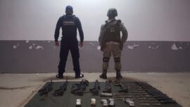 Parácuaro, Michoacán, a 5 de Noviembre de 2020.- Personal de las secretarías de Seguridad Pública (SSP) y de la Defensa Nacional (SEDENA), lograron el aseguramiento de seis fusiles, así como 418 cartuchos útiles, cuando desarrollaban un dispositivo de seguridad en una zona serrana de este municipio. Los elementos...