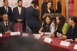 Morelia, Michoacán, a 21 de Noviembre de 2024.- La presidenta de la Comisión de Programación, Presupuesto y Cuenta Pública del Congreso del Estado, Giulianna Bugarini, junto al presidente del Congreso del Estado, Juan Antonio Magaña de la Mora, recibieron en manos de Luis Navarro García, secretario de Finanzas,...