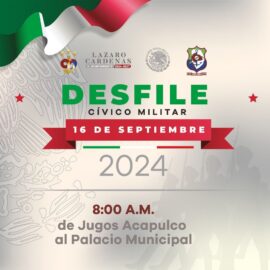 Cd. Lázaro Cárdenas, Michoacán a 15 de Septiembre de 2024.- Con motivo del 214 Aniversario de la Independencia de México, el Gobierno Municipal de Lázaro Cárdenas extiende una invitación a toda la población para asistir al tradicional Desfile Cívico-Militar, que se llevará a cabo este lunes 16 de...