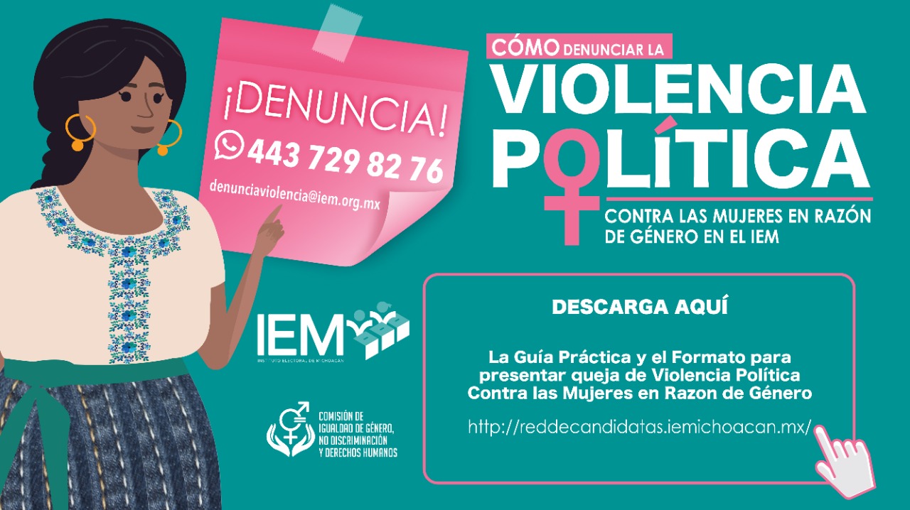 Cabe mencionar, que el Instituto Electoral de Michoacán damos protección a cualquier mujer que solicite ayuda y protección ante situaciones de violencia, “nuestras puertas estarán abiertas para apoyarte y resguardarse, en caso de que así lo necesites, te llevamos a tu casa de forma segura denuncia al teléfono (443) 729 82 76 ó al correo electrónico: denunciaviolencia@iem.org.mx.