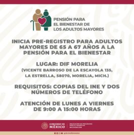 Morelia, Michoacán, 12 de julio de 2021.- Con la finalidad de dar una atención más eficiente y oportuna, la Secretaría de Bienestar delegación Michoacán informa a la población adulta mayor que los trámites para la Pensión Universal del Gobierno de México se realizarán en los Centros Integradores de...