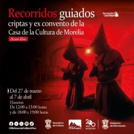Morelia, Michoacán a 27 de Marzo de 2024. ¿Quieres disfrutar de una experiencia llena de misterio e historias de la época virreinal? Esta Semana Santa la Secretaría de Cultura de Michoacán (Secum) te invita a los recorridos gratuitos por las criptas del Antiguo Convento de los Carmelitas Descalzos,...