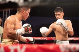 Morelia, Michoacán, a 26 de julio de 2022.- El Pugilista moreliano, Brandon «Bam Bam» García, sucumbió en su intento por quitarle el invicto al orgullo de Empalme, Sonora, Marco Cota (8-0), en la división de los pesos ligeros, al caer en el segundo asalto por nocaut técnico dentro...