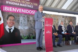 Morelia, Michoacán a 12 de Enero de 2026. Para el impulso y mejora de la educación de más de 800 alumnos de Villas del Pedregal, el gobernador Alfredo Ramírez Bedolla inauguró la Escuela Secundaria Técnica 168 “Ifigenia Martínez”, obra que forma parte del complejo educativo más grande que...